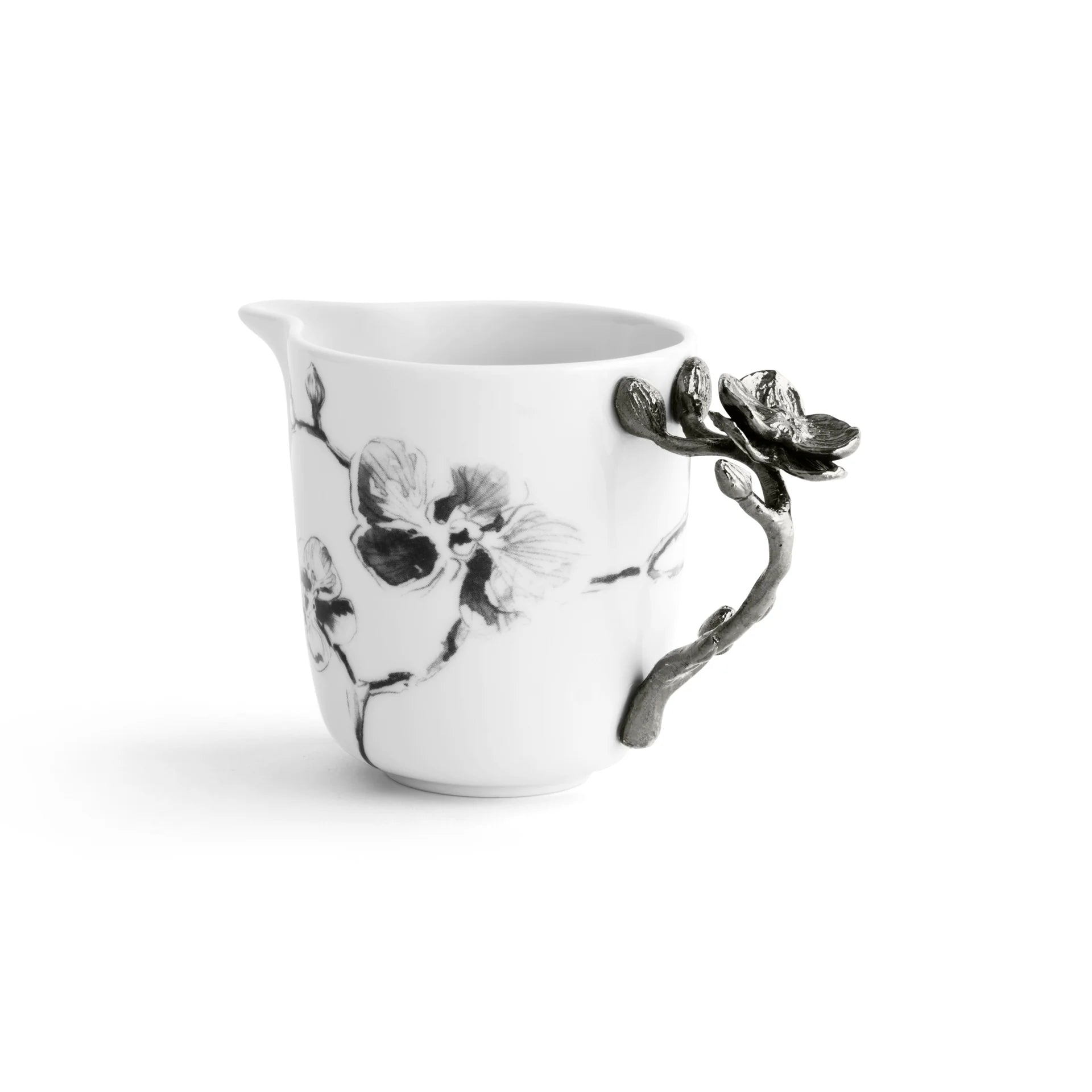 "There is something so seductive about orchids. In blackened nickel, they are even more sublime, like a woman wearing a black velvet gown floating through a great estate or a glassy urban high-rise. The dark atmosphere of the orchids against the hammered metal is like the afterglow of a beautiful evening."