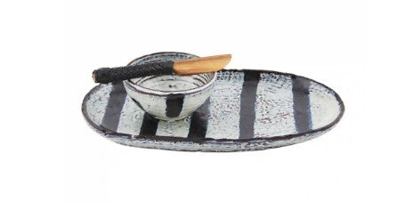 Black Stripe Tray and Dip Set