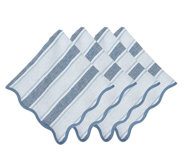 Inspired by idyllic days beside the sea, happy-up any table setting with classic cabana stripes of pure, crisp, breezy linen in candy-colored, sun-drenched hues. Beautifully finished with a scalloped trim for a touch of casual elegance.