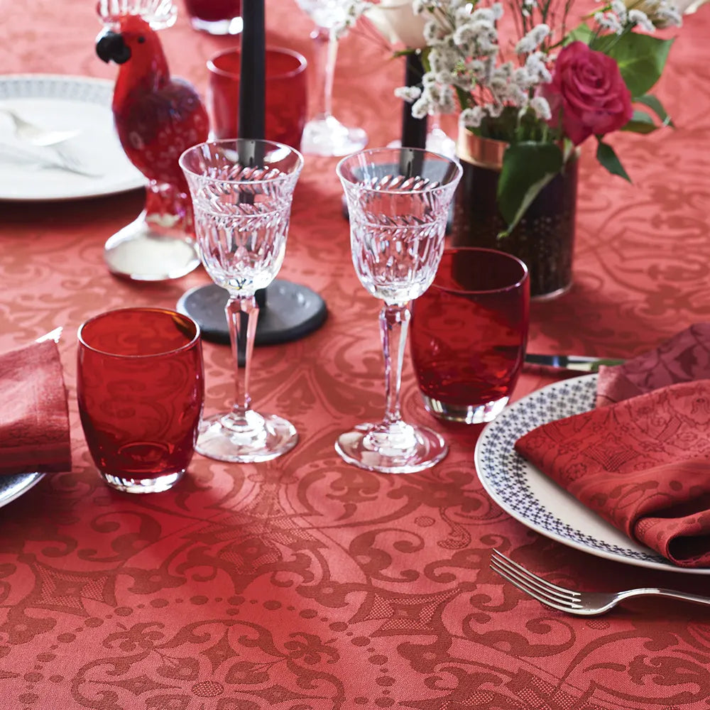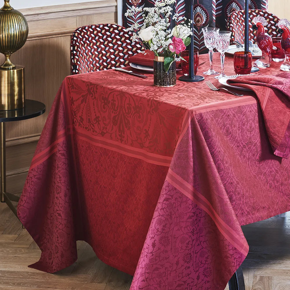 Cassandre Grenat Tablecloth 68"x143", Stain Resistant Cotton