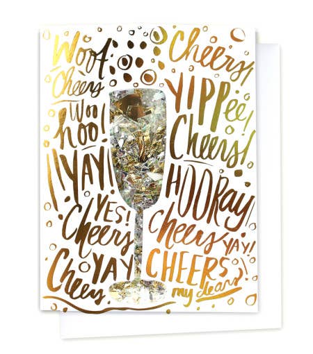 This greeting card features gold foil hand lettering with a die cut shape, revealing a sealed bag of our hand mixed #thimbleconfetti backing the inside the front of the card. Extra postage may be required to mail.