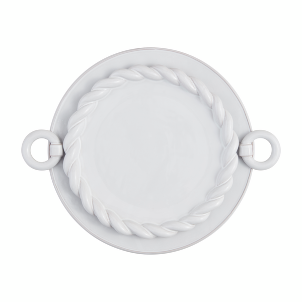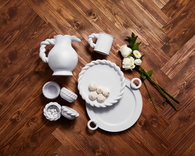 Ceramic Twisted Nested Platters. This exquisite set includes two beautifully crafted glazed terracotta platters, each featuring an elegant twisted detail that adds a touch of sophistication to any table setting. The smaller platter measures 11 inches in diameter, while the larger one is 12 3/4 inches, making them perfect for serving a variety of dishes. The warm, earthy tones of the terracotta material provide a rustic charm, while the glossy glaze finish enhances their durability and aesthetic appeal. Ideal for both casual gatherings and formal occasions, these platters are not only functional but also serve as stunning decorative pieces.