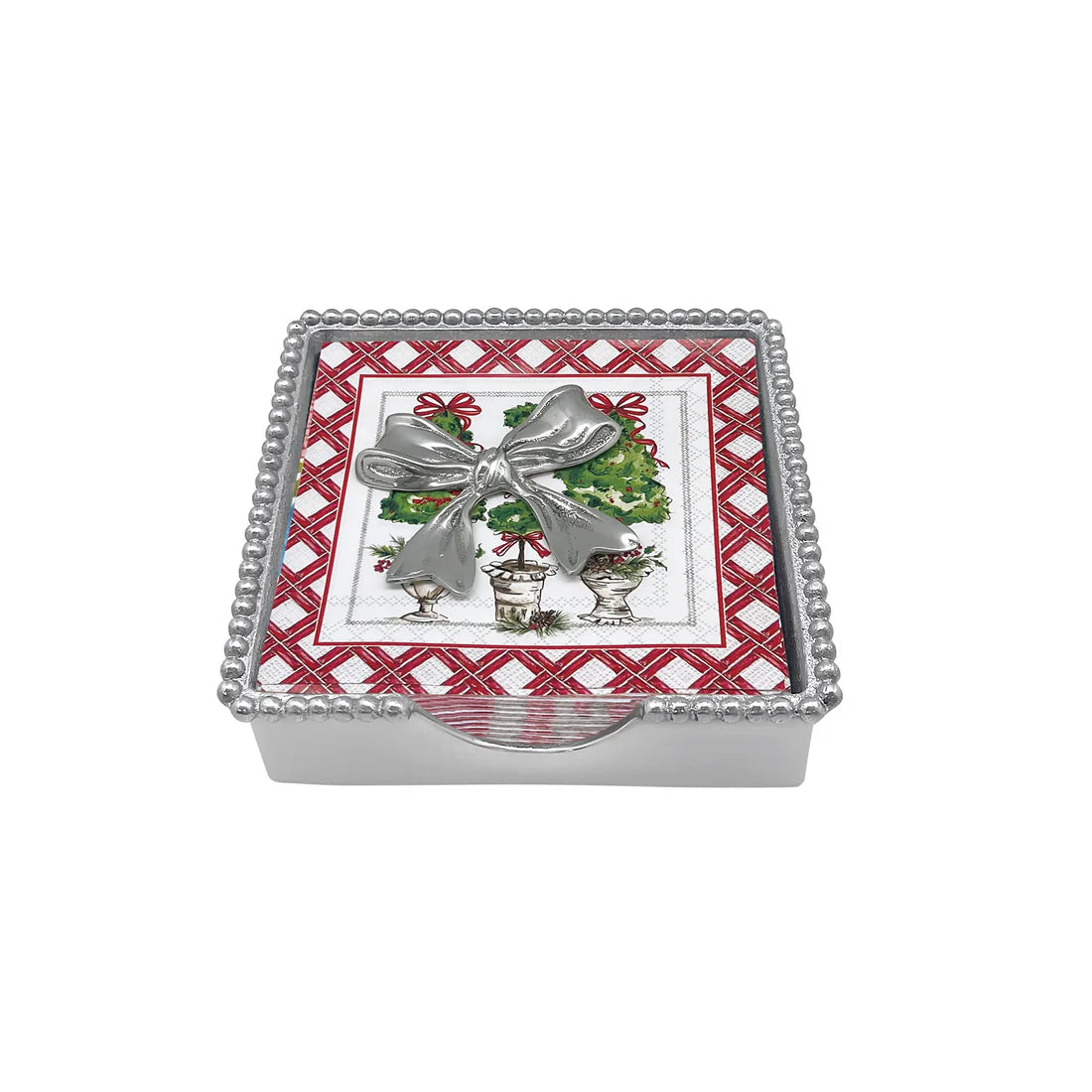 Christmas Topiary Bow Beaded Napkin Box Set