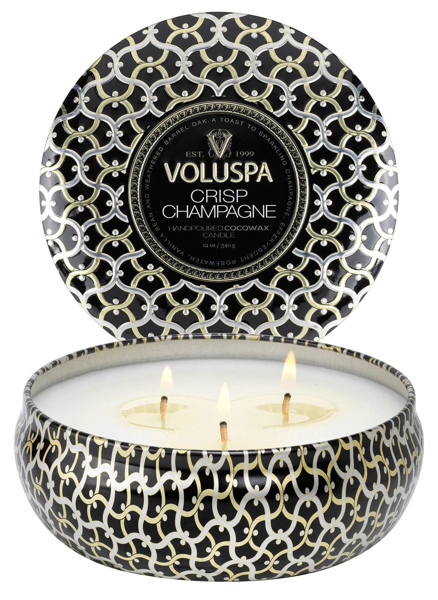 Voluspa's unique coconut wax blend is housed in a 12 oz. metal vessel adorned in Maison pattern and topped with a matching lid that keeps the candle dust-free when not in use. Our three wicks allow you to enjoy fragrance ample fragrance throw for 40 hours. Our candles are handcrafted in the United States and feature our proprietary, clean-burning coconut wax blend and natural wicks. Our products are free of phthalates, pesticides, parabens and sulfates and are never tested on animals. Up-cycle this best seller into a keepsake after the last burn.
