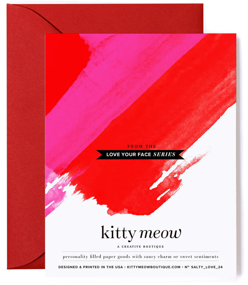 Each WITTY 4.25" x 5.5" folded greeting card is printed on bright white, thick, 100% recycled card stock and comes with a red A2 envelope.