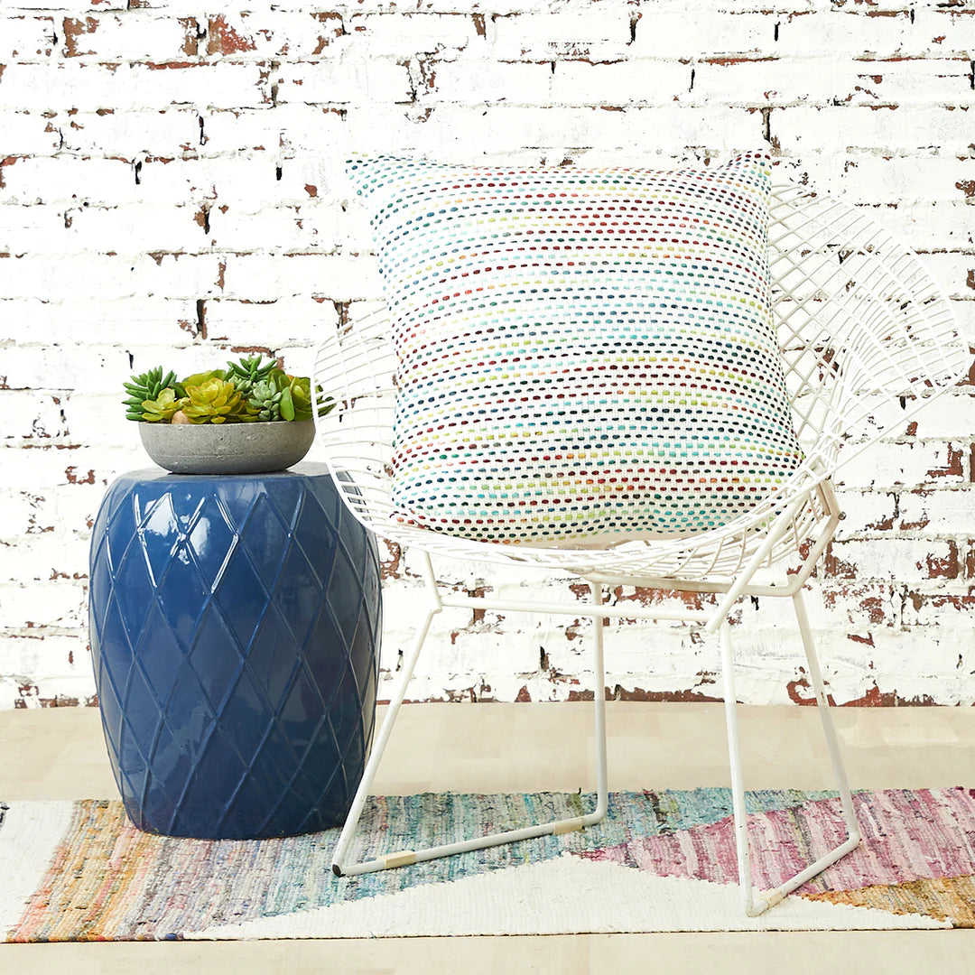 Feel like the true unicorn that you are with this full spectrum rainbow pillow. With colors perfect for holidays and everday looks alike, pair the Ella pillow with the matching throw blanket. Each pillow is individually yarn dyed and woven by hand with quality materials, which means no two are exactly alike.
