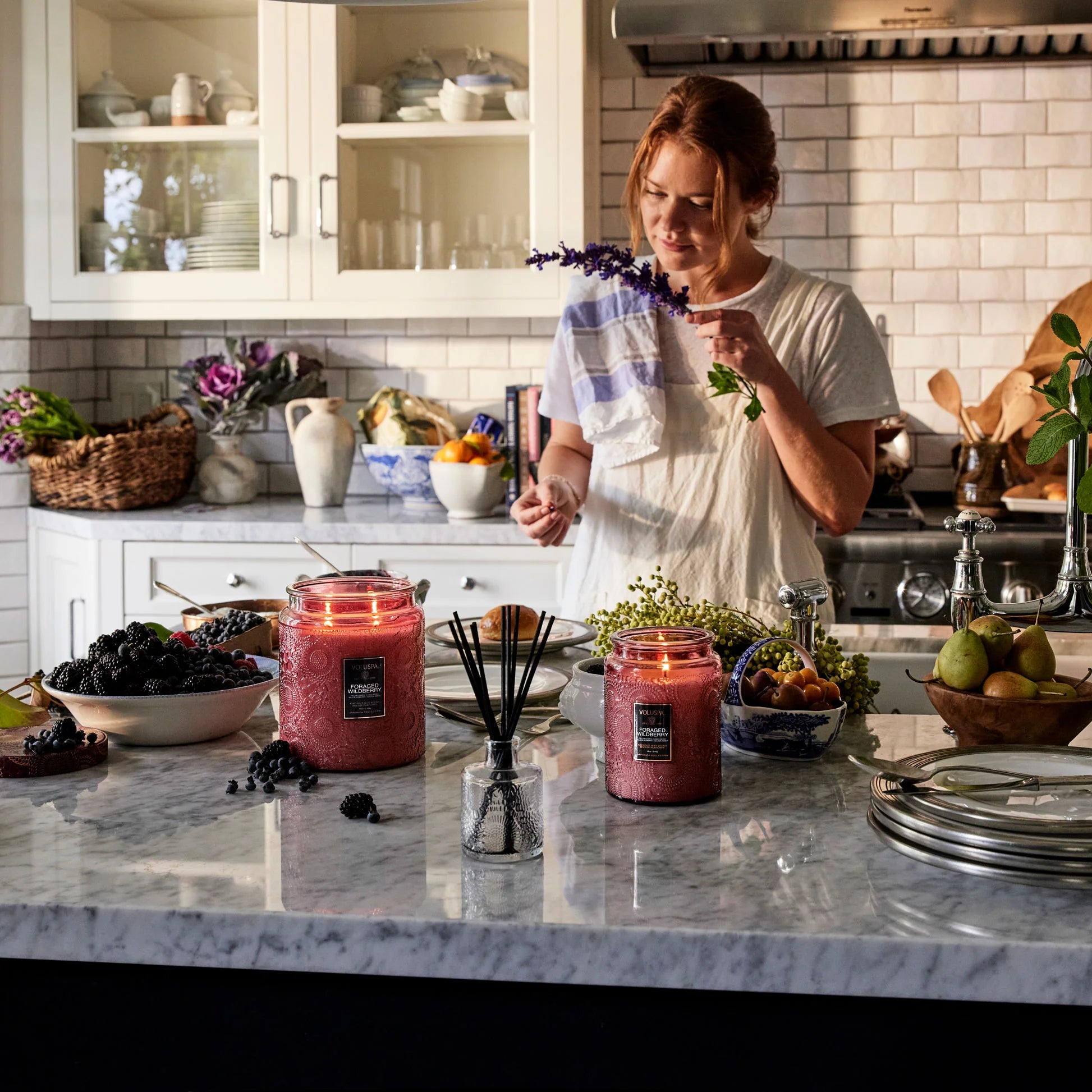 Capture the moment when the Golden Amber sunlight reaches down through the trees, casting warmth along the edges of a wooded trail. Tread softly on Fallen Leaves as you uncover a tangled maze of plump, ripe Berries. Hit the trail to search out nature’s last offering of the season, Foraged Wildberry.