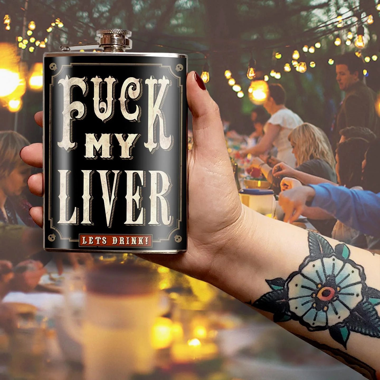 Whether you're sipping alone in style or sharing a laugh with friends, our collection of kitschy, cute, funny, and timeless flasks contains something for everyone. Enjoy libations in style and create lasting memories with these unique accessories. 8 oz. Liquor Flask: F My Liver Kick off every holiday or party with confidence. Celebrate with Cool stylish stainless steel drinking flasks. One of a kind designs for durability with a retro vintage vibe. Alcohol hip flask comes in a ready to go gift box making it ideal gift idea for Valentines day, Father's Day, birthdays, or general bad-assery. Refresh your glassware, barware, or drinkware with unique designs exclusive to Trixie & Milo!