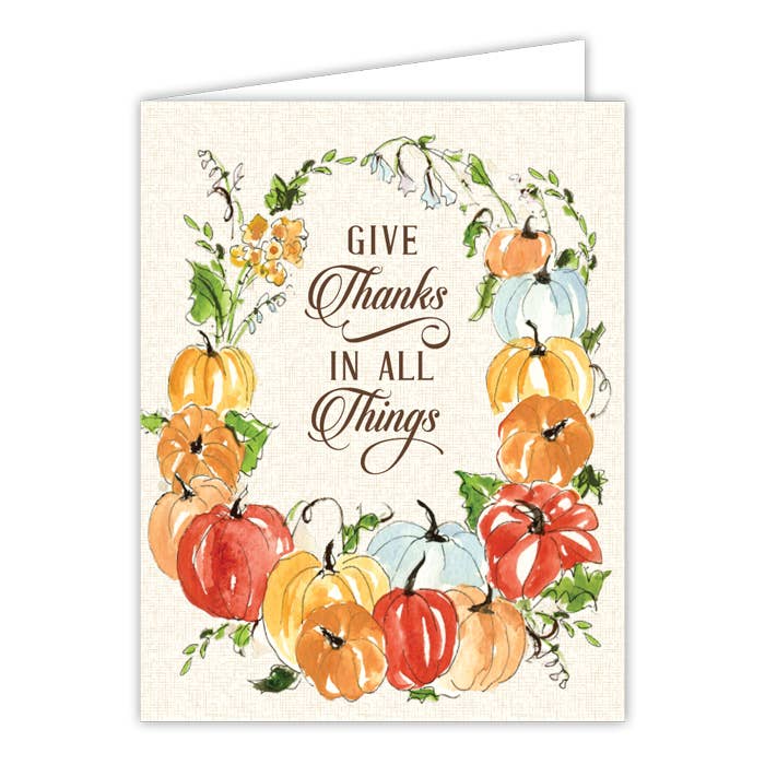 Give Thanks In All Things Pumpkin Wreath Greeting Card