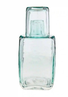 2-piece set. Square glass bottle beside carafe comes with coordinating stacking cup.