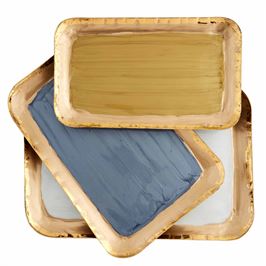 Elevate your serving game with our Gold Rim Tray Set! These shimmering beauties aren't just trays—they're party MVPs waiting to show off your snacks, cocktails, or that cheese board you spent way too long arranging. Perfect for making everyday nibbles feel fancy-schmancy or adding that "I totally have my life together" vibe to your next gathering. Sparkle responsibly!