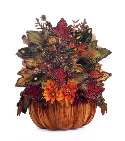 The Harvest Forage Pumpkin Turkey blends cozy elegance with festive charm, featuring a plush velvet pumpkin body that radiates seasonal warmth. Its beaded and adorned tail mirrors the splendor of autumn foliage, making it a delightful accent for any harvest-inspired display.