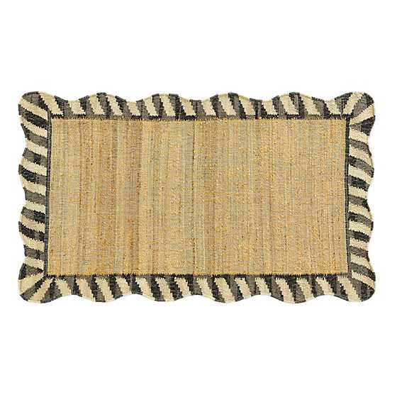 This 3' x 5' woven rug features a center of sustainable jute, bordered by a scalloped edge of black and white wool stripes. So versatile, it’s perfect for any room.