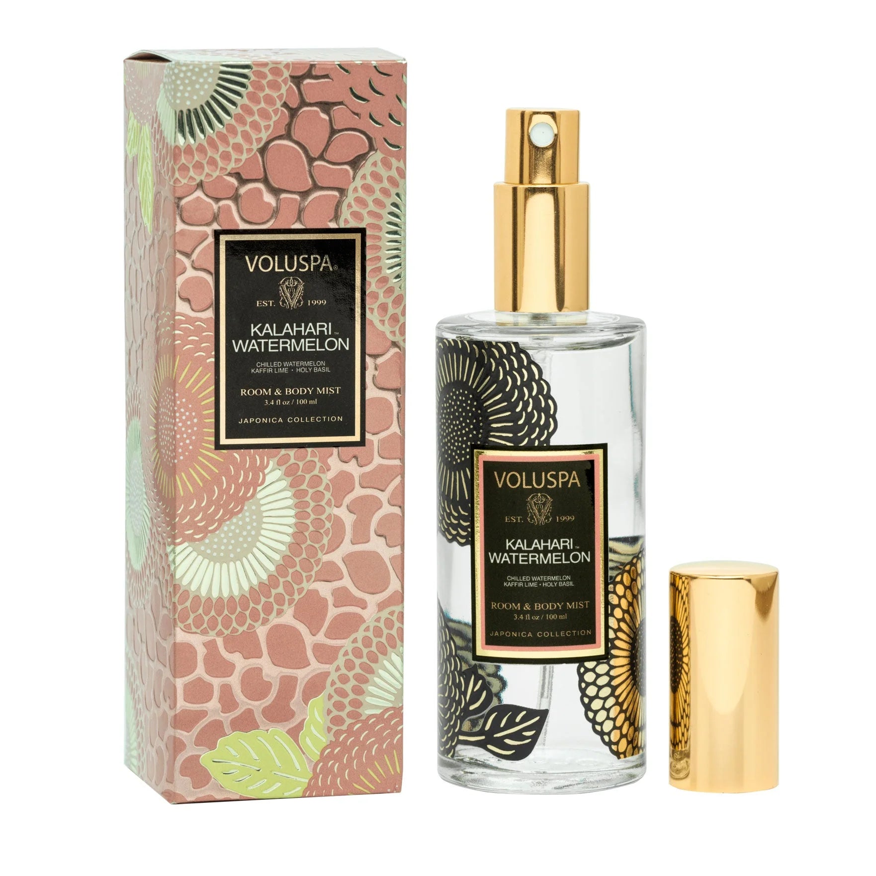Refresh your space with Voluspa's aromatic room spray. A burst of flameless fragrance wherever you need a lift. Our fragrant room spray is housed in a glass vessel with gold accents for a subtle pop.