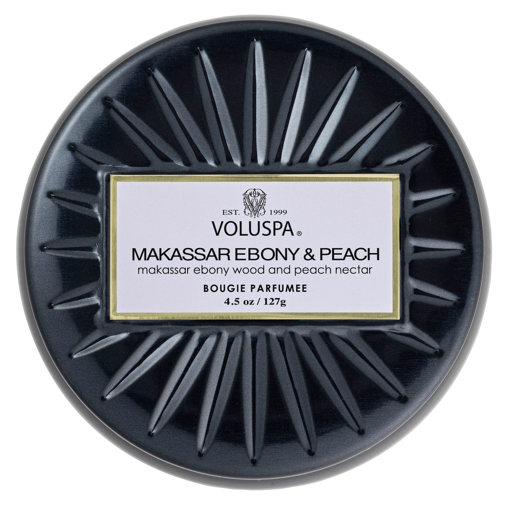 Take in the deep sensual darkness of wood paired with fruit. Inhale the scent of solid Black Ebony and Mahogany with the succulence of ripe Peaches and Apple Blossom. Like discovering an overflowing fruit orchard in the deepest, darkest enchanted forest - imagine this irreverent scent combination, so appealing in its darkly, unexpected, juicy delight. A Voluspa classic, feel free to pick it.