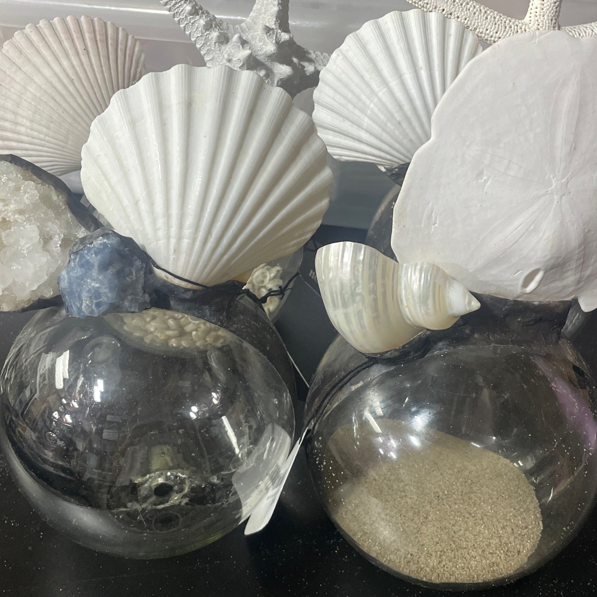 This small round glass float embellished with Citrine, Starfish and a Shell is charming and classy. We love the simple look of a glass bottom with the natural sealife and stones on top. This classy piece is a perfect addition to any room. Citrine Stone, known as the “SUCCESS STONE”. Citrine enhance mental clarity, confidence, and will power.