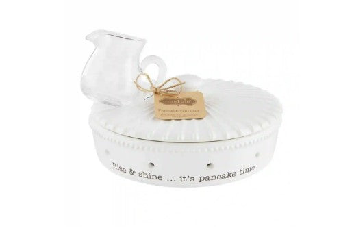 Rise and shine with Mud Pie's Circa Pancake Warmer Set. The two piece set comes with a beaded ceramic pancake warming dish to hold pancakes and measures 2" x 8" diameter.