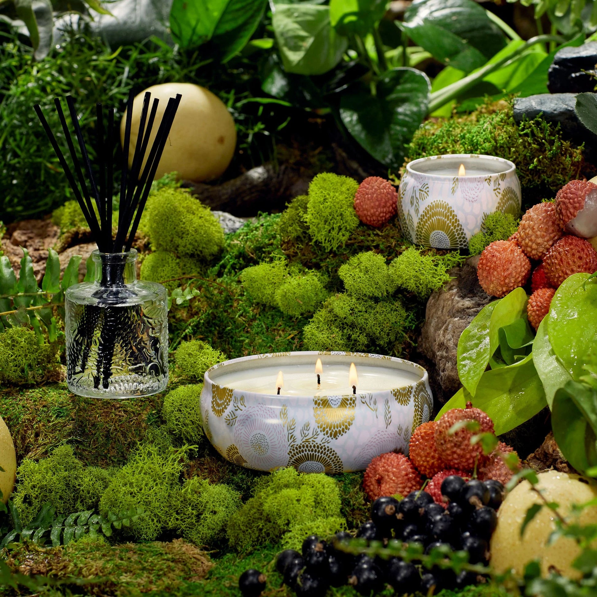 A freshly-picked cornucopia of lush lychee, crisp cassis, fresh melon and Asian pear is the inspiration for this mouth-watering, cream of the crop scent. A daily serving from this juicy garden's harvest will revitalize and enliven the ambiance of any room.