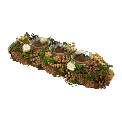 The Pinecone Triple Votive offers a charming way to illuminate your space with a cozy, natural touch. Designed to hold three votive candles, this piece brings warmth and rustic elegance to any room or table setting. Perfect for creating a welcoming atmosphere, its pinecone design adds subtle seasonal flair year-round. Enhance your décor effortlessly with this stylish and functional accent.