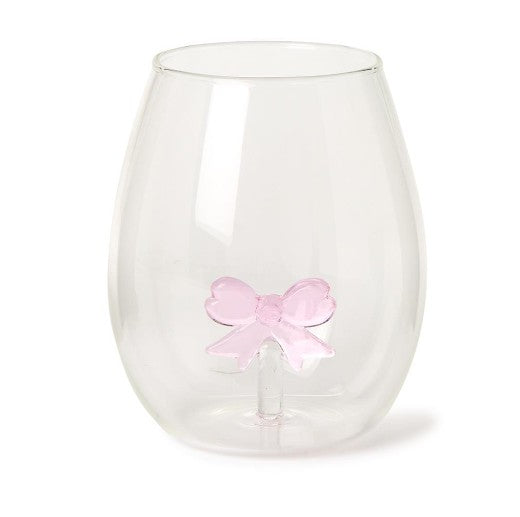 Pink Bow Stemless Wine Glass