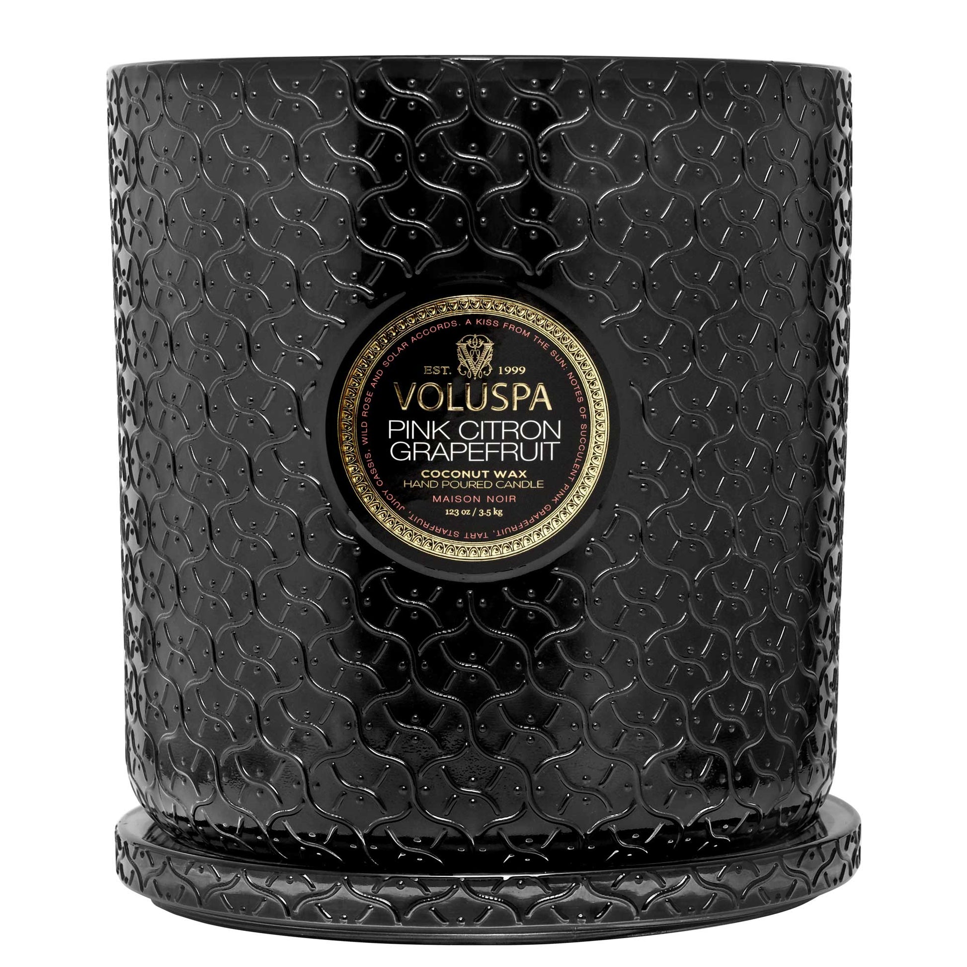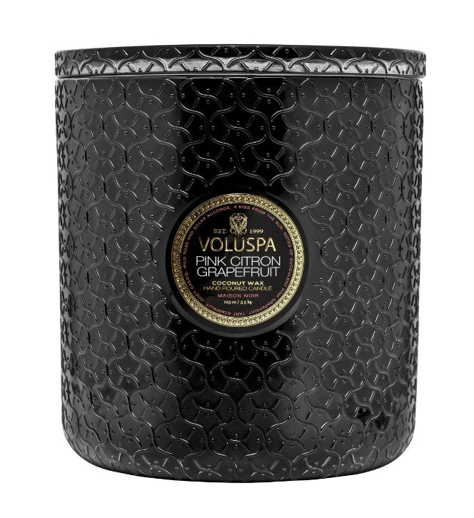Voluspa's unique coconut wax blend is housed in a 123 oz. glass vessel adorned in Maison pattern and is topped with a matching lid that keeps the candle dust-free when not in use. The multiple wicks allow you to enjoy fragrance throw for 250 hours. Our candles are handcrafted in the United States and feature our proprietary, clean-burning coconut wax blend and natural wicks. Our products are free of phthalates, pesticides, parabens and sulfates and are never tested on animals. Up-cycle this best seller into a keepsake after the last burn.