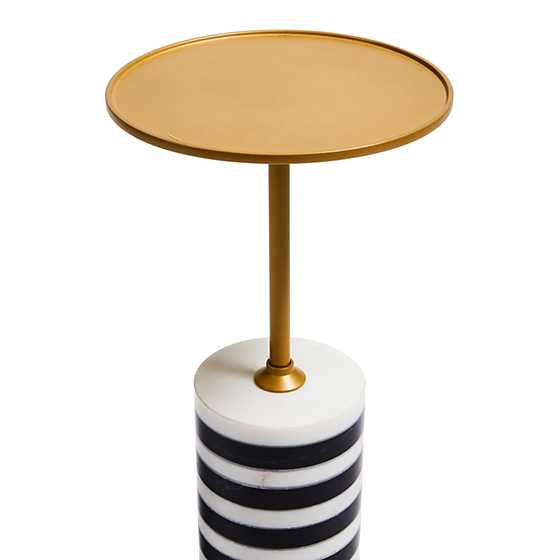 Small in size but big on style, this cocktail table is just the right size for a drink or two. It features a base of stacked marble discs, finished with a matte brass-finish metal top.