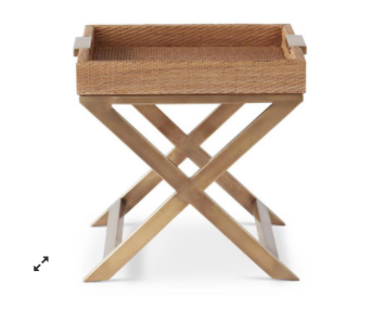 Rattan Wrapped Tray Side Table w/Brass Metal Scissor Legs 21.25 Inch