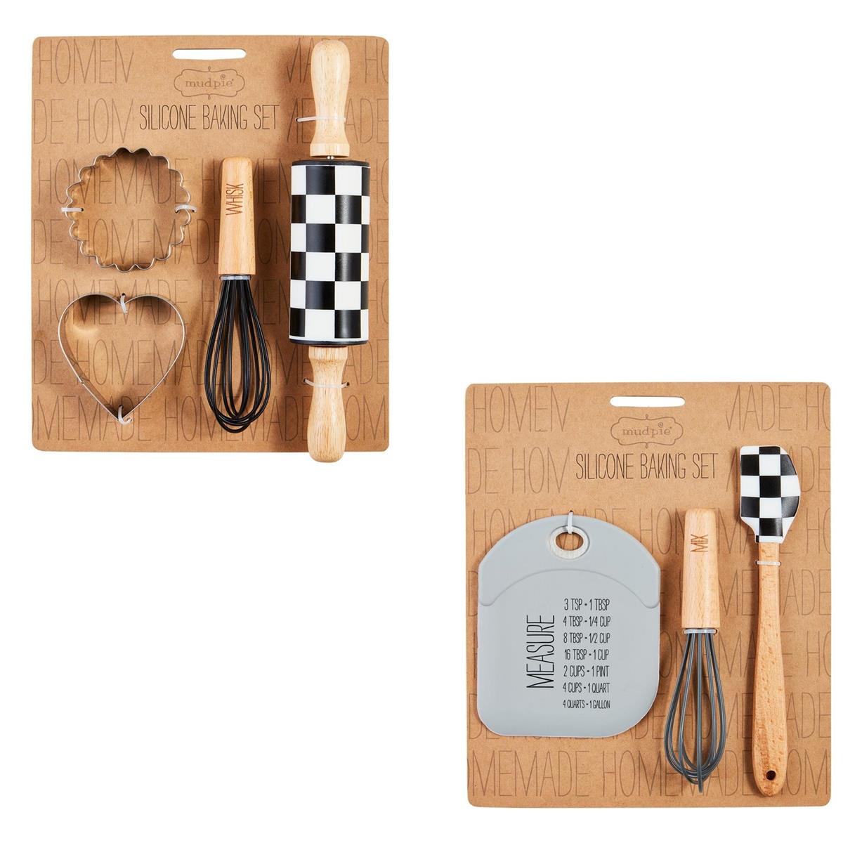 - 4-piece set with stainless steel cookie cutters, silicone whisk and roller, and wooden rolling pin