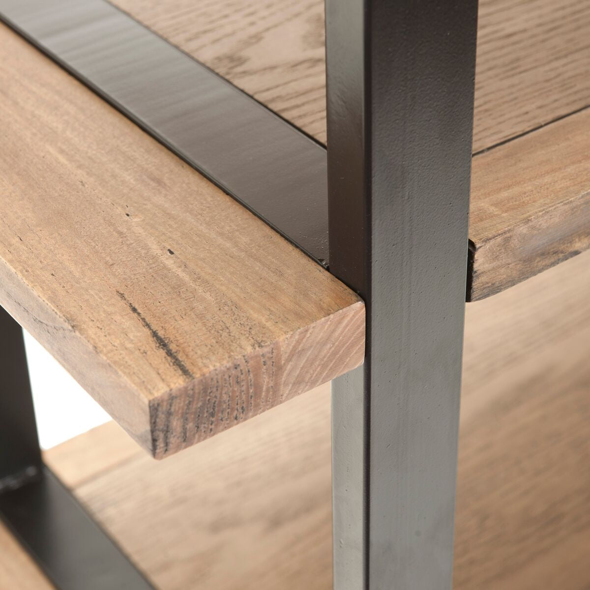 This étagère features spacious elm shelves finished in a lush espresso hue within a sturdy iron frame