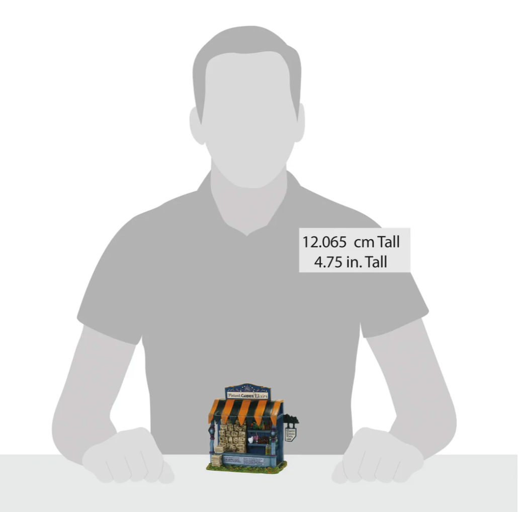 Every witch needs a place to buy her potions and ingredients for spells and the "Spells & Potions Kiosk" is the newest retailer in the Halloween Village. An orange and black striped awning makes this kiosk really stand out.