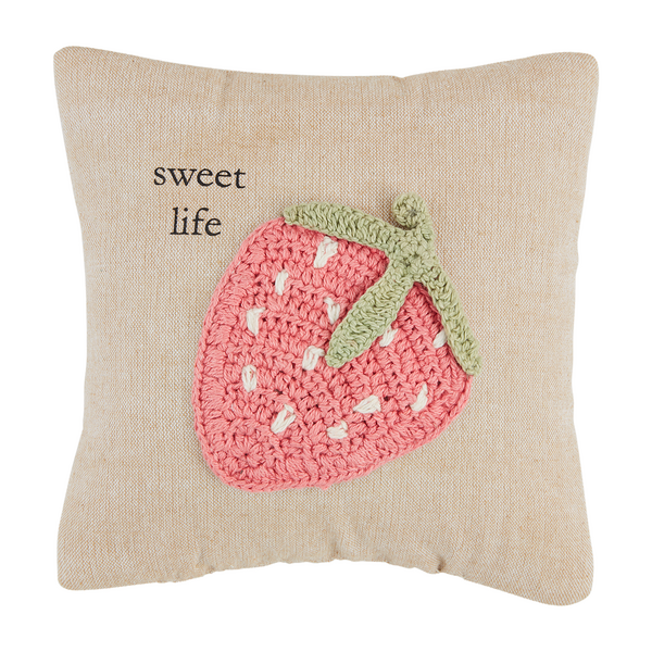 Strawberry Flower Mini Crochet Pillow