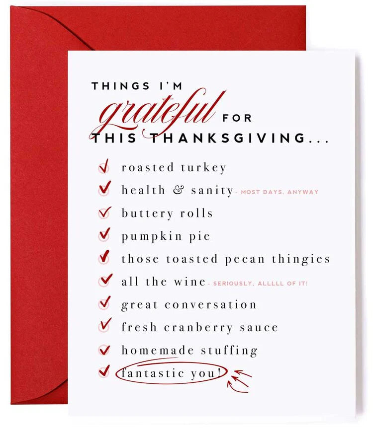 Things I'm Grateful For, Thanksgiving Holiday Thank You Card