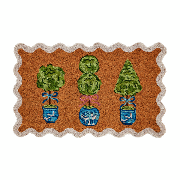 The Topiary Doormat is a stylish and functional addition to any entryway, crafted from high-quality woven coir fibers. Measuring 18" x 29", this doormat is designed to fit perfectly at your doorstep, providing a warm welcome to guests while effectively trapping dirt and debris. Made from 100% natural coir, it offers durability and resilience, ensuring long-lasting use. The natural texture and earthy tones of the coir material add a touch of elegance and charm to your home's entrance, making it both a practical and decorative piece.