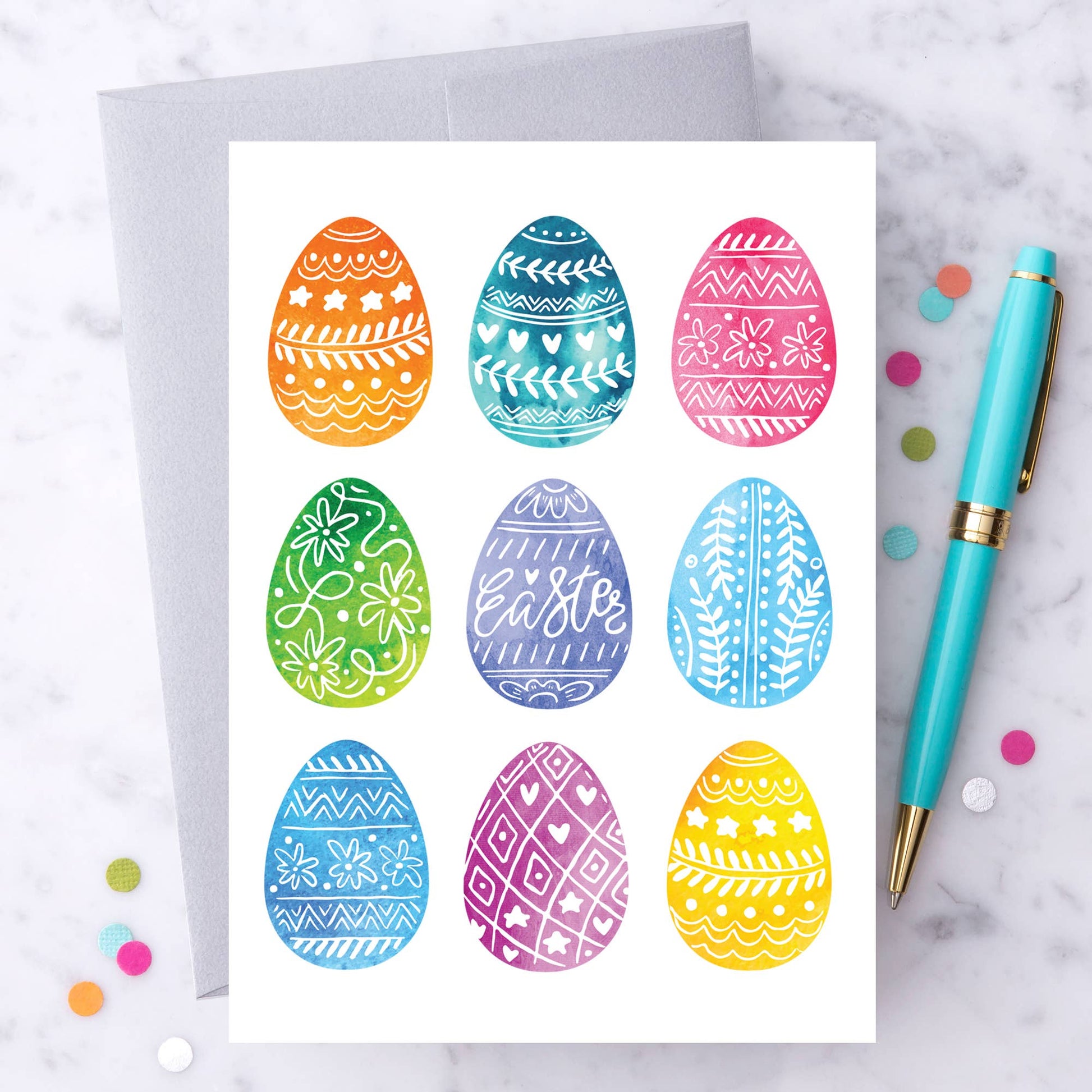 EA03 Watercolor Decorated Easter Eggs Greeting Card