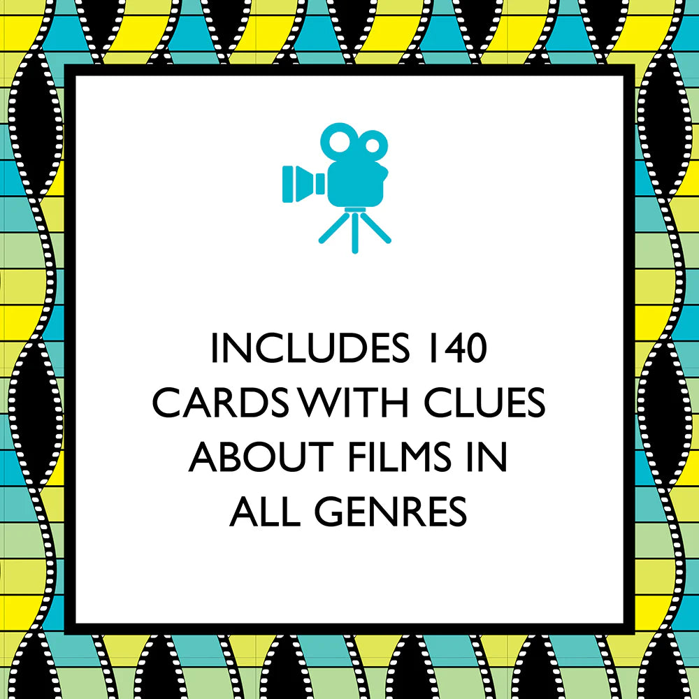 MOVIE GUESSING GAME: Movie lovers—get ready to test your cinema smarts in the guessing game all about the gems of the silver screen! This set of 140 game cards includes an entertaining range of movies (G-rated to R-rated), from animated to action-adventure, mystery to comedy, and much more.