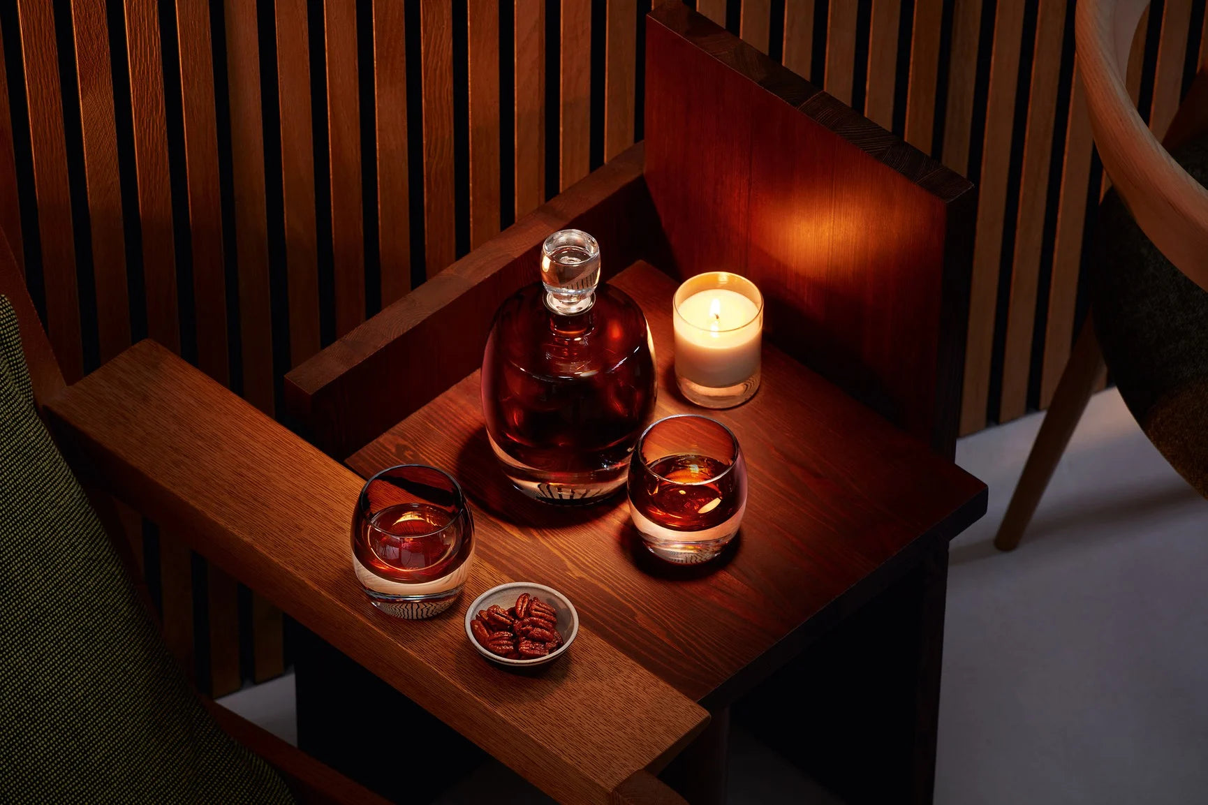 DimensionsCapacity: 8oz, Height: 3.5in, Width: 3.5inDue to their handmade nature, the size of these items may vary slightly.Materials & makingThe Whiskey Club tumbler is mouth blown into metal moulds by master glassblowers to create the barrel shape and exceptional weighty base. The cased colour is achieved by gathering layers of brown and clear glass, shaping the gather and blowing into a mould. The rim is fire-polished to achieve a smooth finish.