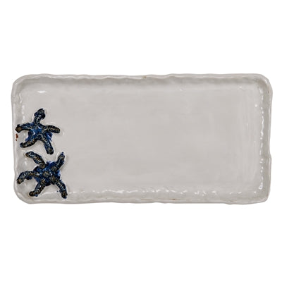White & Blue Star Fish Plate Large